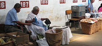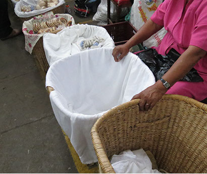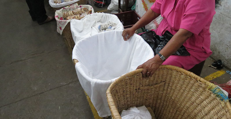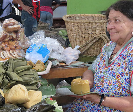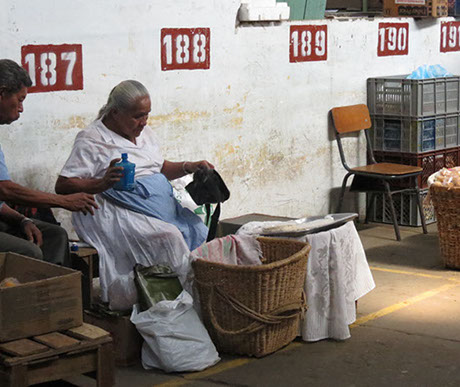El canasto que lleva, la huella que queda, el fruto de los años de entrega, dibujados con tesón en los espacios de la plaza de mercado.