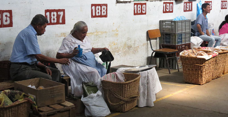 El canasto que lleva, la huella que queda, el fruto de los años de entrega, dibujados con tesón en los espacios de la plaza de mercado.